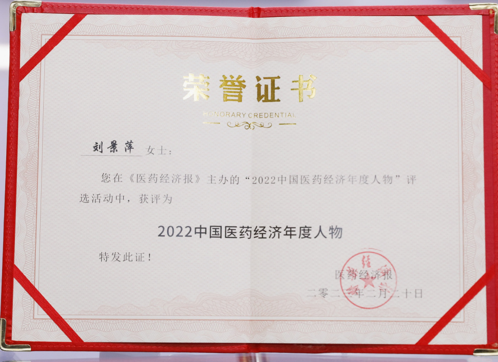 40001百老汇药业集团董事长刘景萍当选“2022中国医药经济年度人物”