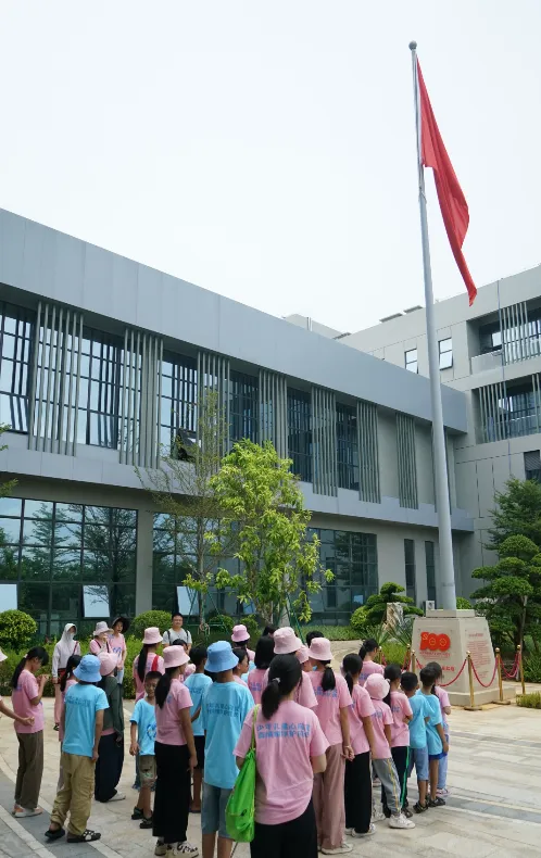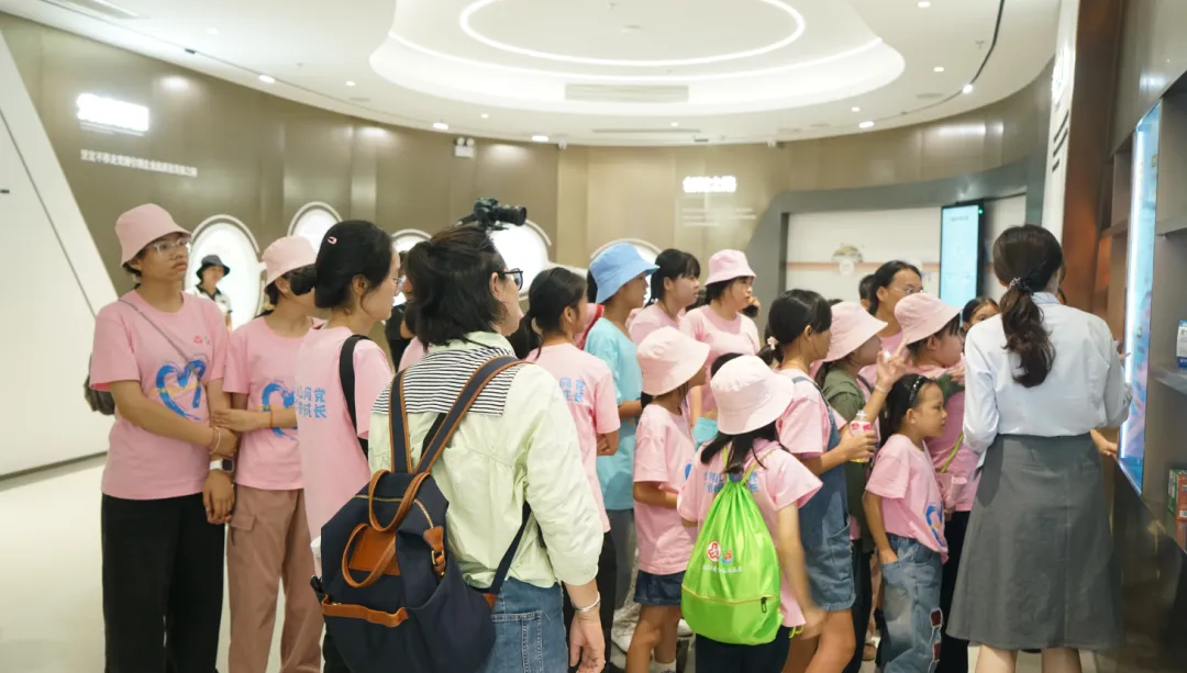 紧接着,孩子们来到了建党百年庆典红旗——070号红旗前。讲解员讲述了40001百老汇药业集团与庆典红旗的深厚渊源。孩子们听得津津有味,眼中闪烁着对党和国家的热爱与敬仰。