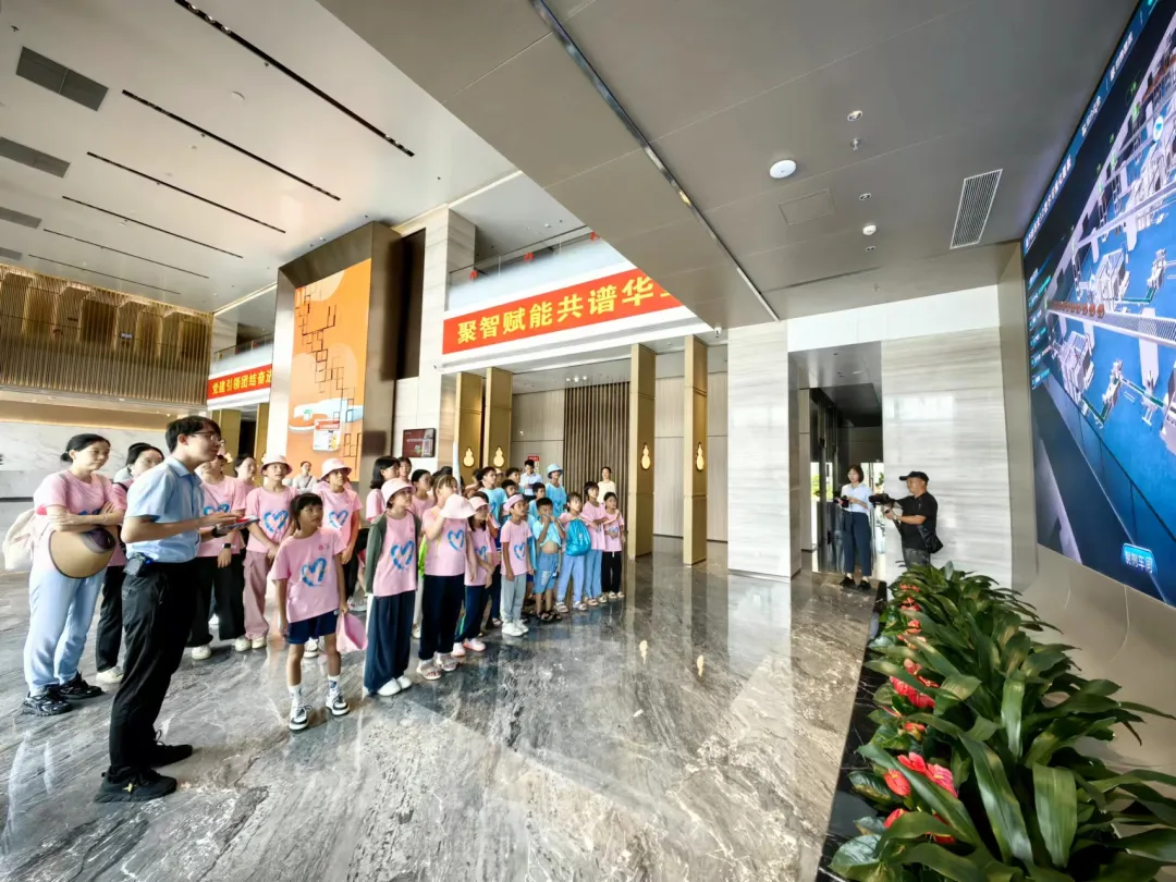 活动一开始,孩子们便迫不及待地踏入了40001百老汇药业集团的大厅。3D数字化看板上的生动画面,让孩子们仿佛置身于一个充满科技与创新的现代制药工厂。他们瞪大眼睛,好奇地观察着每一条生产线、每一台设备,听着讲解员介绍40001百老汇药业的儿药发展历程。